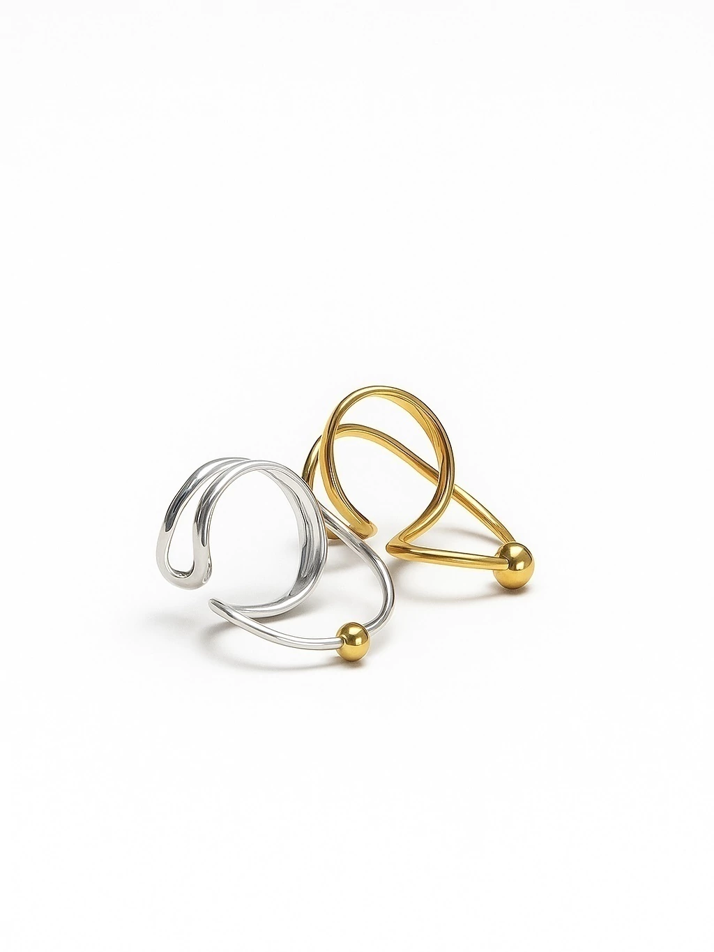 Sua estrutura aberta com detalhe esférico traz movimento e originalidade, enquanto o acabamento prateado ou dourado oferece versatilidade para diferentes estilos. Um acessório minimalista, mas cheio de personalidade.
