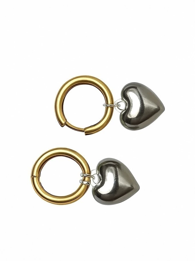 As argolinhas douradas contrastam com o pingente de coração volumoso em prata, criando uma peça charmosa e moderna. Leves e versáteis, são perfeitos para quem busca acessórios delicados com um toque divertido e ousado.