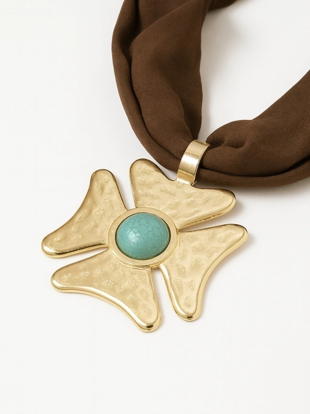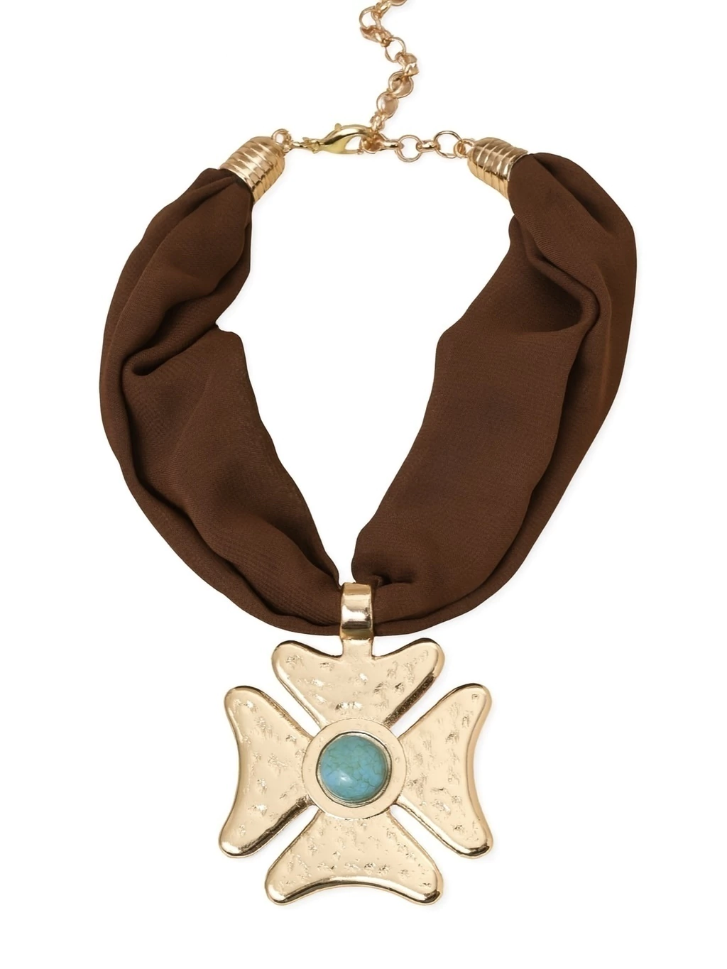 Elegância e autenticidade se encontram neste colar sofisticado. Sua corrente em tecido marrom traz um toque moderno e versátil, enquanto o pingente em banho de ouro 18k apresenta um design orgânico e imponente, com acabamento texturizado que reflete luz e sofisticação.